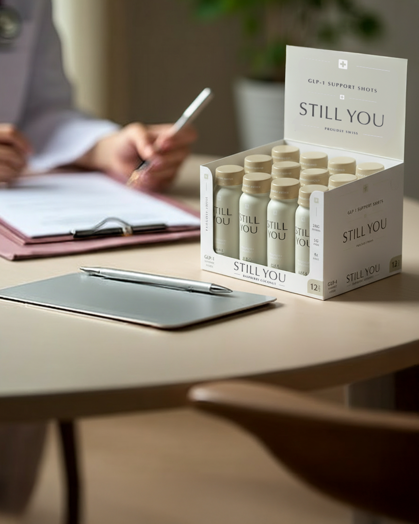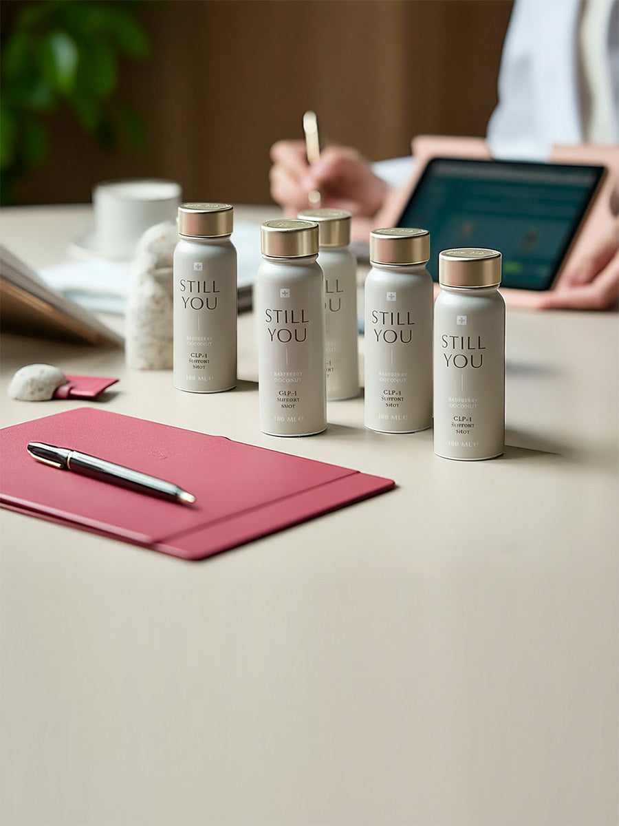 Wenn während der GLP-1-Therapie der Appetit nachlässt, sinkt auch die Zufuhr essenzieller Nährstoffe. Ein einziges 100-ml-Getränk von Still You wirkt den potenziellen Nebenwirkungen entgegen: